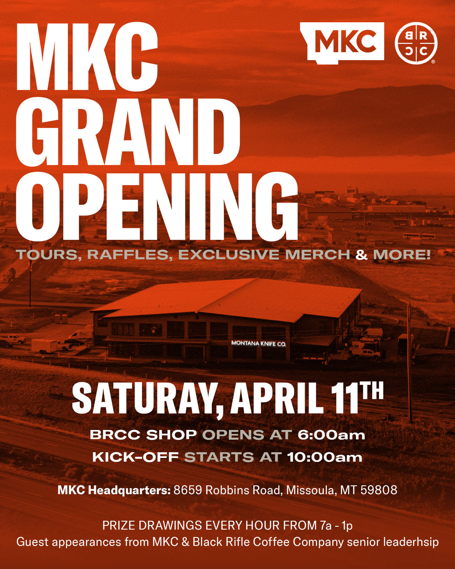 Be part of a landmark day as we open the doors to the new home of Montana Knife Company. Get an inside look at the brand-new MKC Factory Store, the new Black Rifle Coffee Company coffee shop, and tour our state-of-the-art American manufacturing facility.